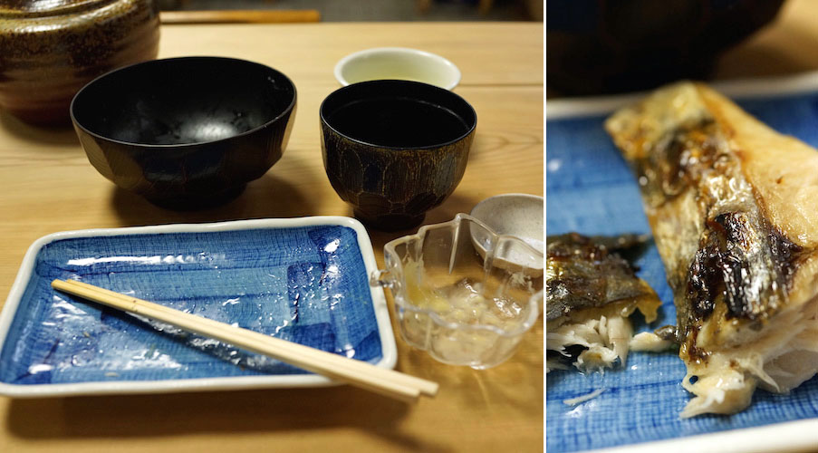 とても上等な家庭料理という内容で、サワラの焼いたの、ネギのヌタ。その二種類で食卓作る。