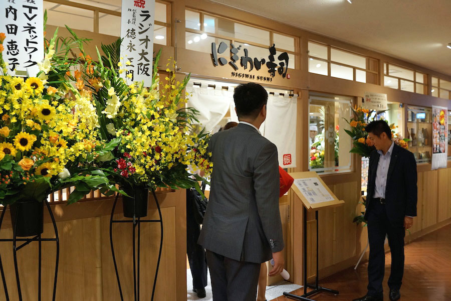 そして今回の関西出張のメインイベント。「にぎわい寿司」という店のオープンレセプションにおよばれします。