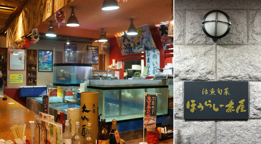熊本の南側の山の中。盆地の街の人吉にあり、大きないけすをもって鮮魚を売り物にしているレストラン。