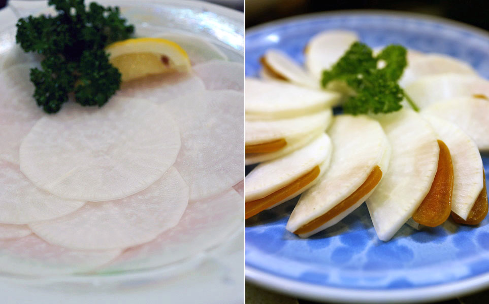 そのなの通り、大根を輪切りにしたもの。レモンを搾って食べるだけ。