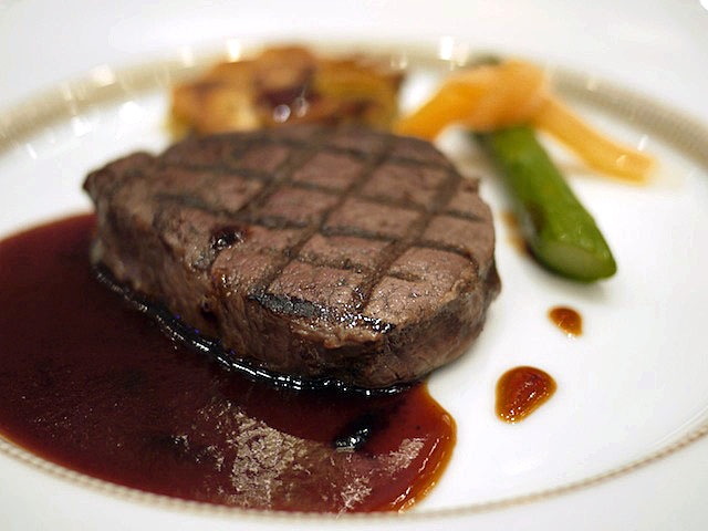 甘み控えめのグラニテはさみ、メインの料理は牛のヒレ肉。