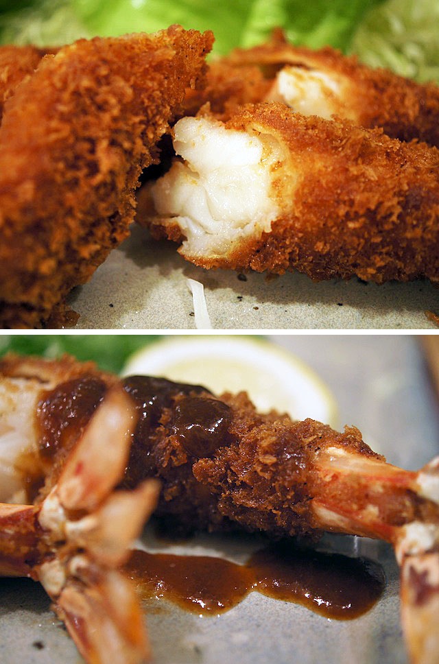 正真正銘、大エビで、それを揚げる準備をしていた。