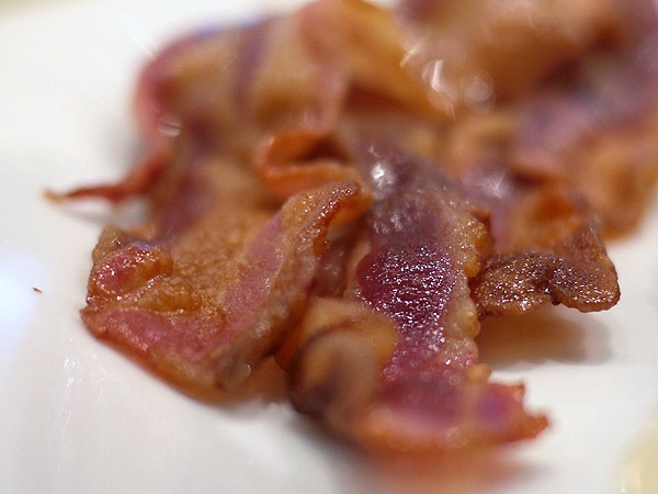 甘いトーストもぐもぐしながら、そこにベーコン、ポンっとひとかけ放り込む。