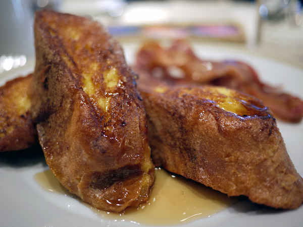 メープルシロップの甘味に塩味ビリっと混じり、朝の元気が出来上がる。