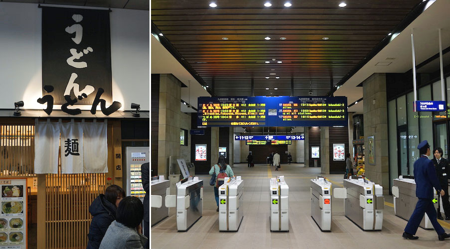 新幹線で移動の前に、ちょっと腹ごしらえをと待合室の中にあるうどんのお店にやってくる。