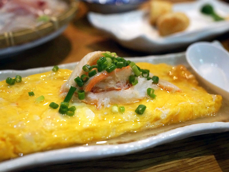 玉子自体にあまり味を加えずに、加えた蟹のほぐし身とほんの少しの塩で味を整えたもの…、焼き加減も固めでちょっとなつかしき味。