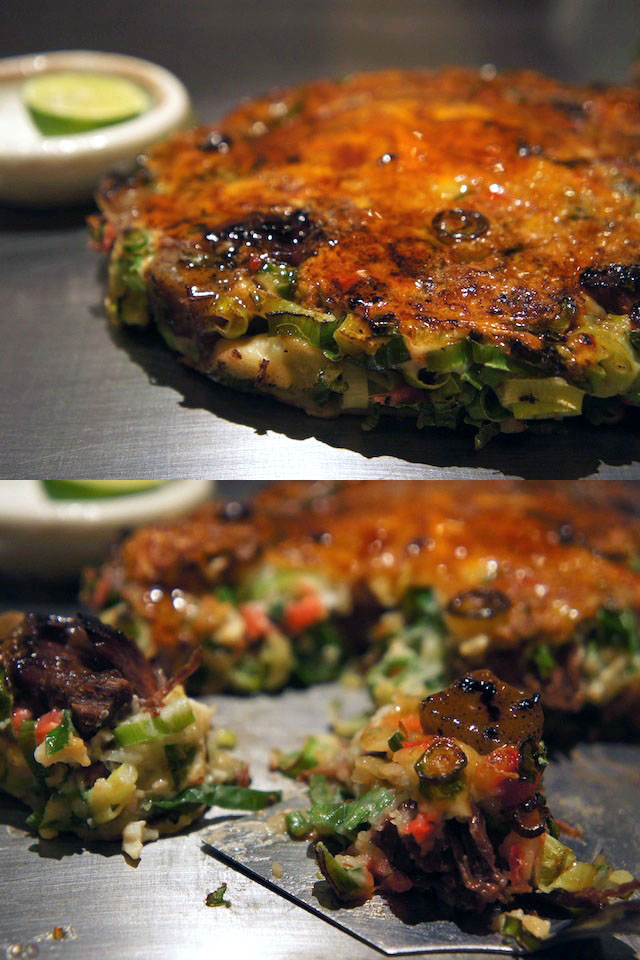 お好み焼きを焼いている、しおれたみたいなおっさんが「にたっ」とボクの顔を見て言うんです。