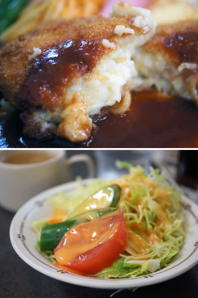 衣はサクッと細かなパン粉で、かかるソースは若干酸味の強めのデミ。
