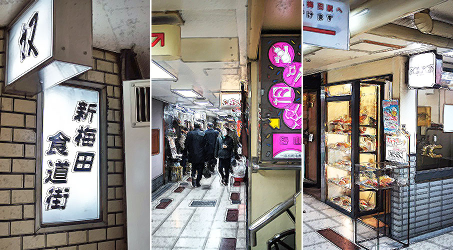 「新梅田食道街」JR線の高架の下にできた街で、縦横無尽に走る細い路地にギッシリ飲食店がならんでる。