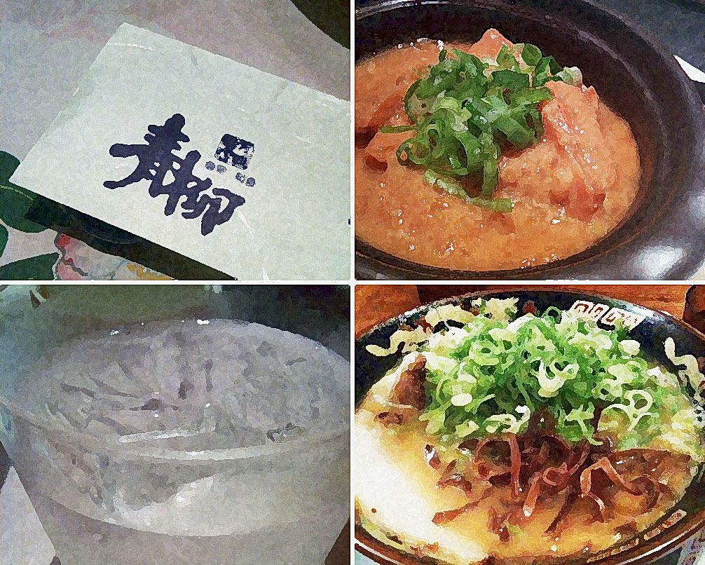 博多ラーメン風の細い小麦粉麺の香りシッカリ、ハリ、歯ごたえに歯切れが見事…、物足りなさを最初は感じたスープに高菜や生姜に胡麻を放り込み、どんどん自分の好みの味に仕立てて味わう。
