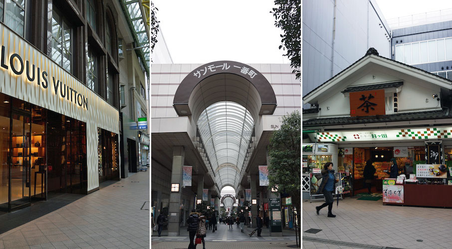 オモシロイ商店街で、さすが東北を代表する大都市らしくブランドショップは大抵ある。ルイビトンなんて立派な路面店を出していて、けれど、隣にファミリーマート。その隣には大戸屋のお店が堂々、大きな看板出してたりして、カオスな感じに笑っちゃう。