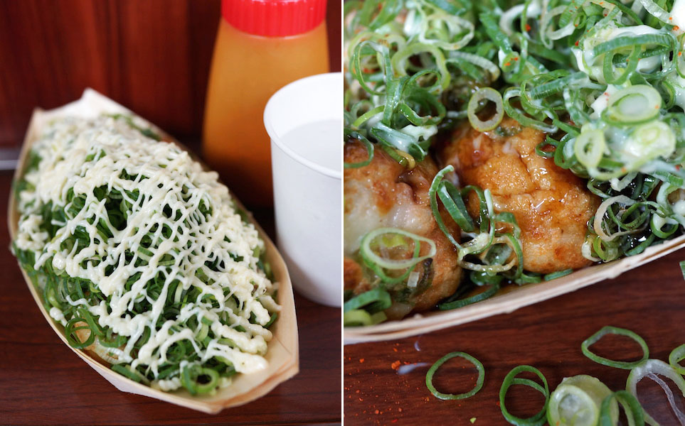 レギュラータイプと、ネギをタップリ盛り上げてマヨネーズかけ食べるねぎマヨ。それぞれ個数を選んでたのむシステムで、ネギマヨ6個をたのんで食べる。
