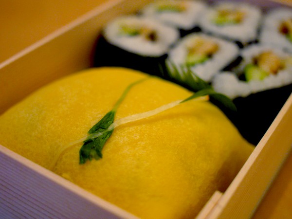ふっくらとした甘い玉子焼きで包まれた、中の酢飯もまたふっくらで、舌の上に置くとそのままハラッとほどけてなくなっちゃう。