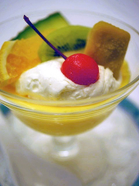 食後の〆をマンゴープリンでめでたくおこなう。
