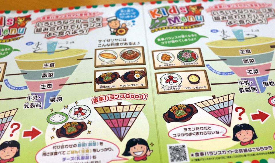 ところで子供用のメニューの表紙に食育情報。かなりわかりやすくて勉強になる内容でぼんやりみてたら、表表紙と裏表紙で間違い探しになっていた。