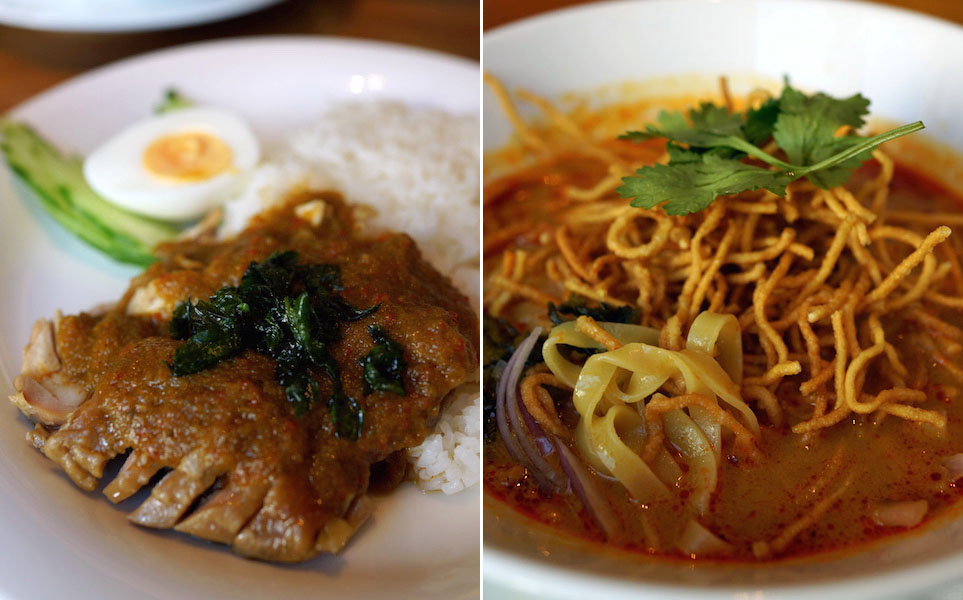 平打ち麺に揚げた卵麺をあわせて作ったカレーヌードル、カオソーイ。パリパリとした揚げ麺が徐々にネットリ、トロミを帯びていくのがたのしくなにしろココの料理の味はいつもピタッと決まってる。お腹に汗をかきました。