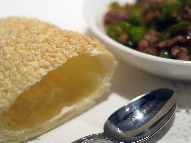 春雨スベスベ、それにパンの表面の胡麻がプチプチ、食感にぎやか。