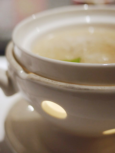 フカヒレそのものは舌にぷつんと残る程度の存在感で、シイタケの軸のところを刻んだモノに鶏のひき肉がタップリ入る。
