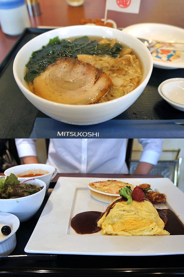 お子様用の椅子をおねだりして座り、お子様ラーメンをもらって食べる。