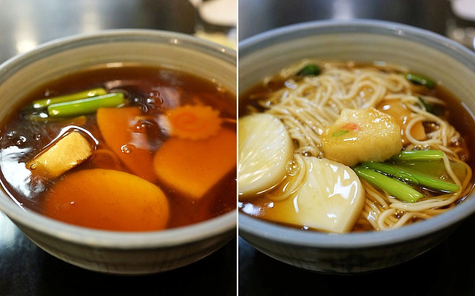 お麩にかまぼこ、タケノコ、シイタケ、小松菜の茎…、具材それぞれが食感、味わいにぎやかでお腹の中もにぎやかになる、オゴチソウ。