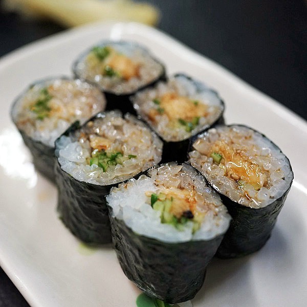 〆に巻物いただきましょう…、と穴きゅう巻をたのんで食べる。