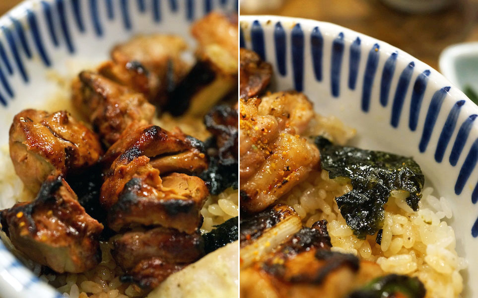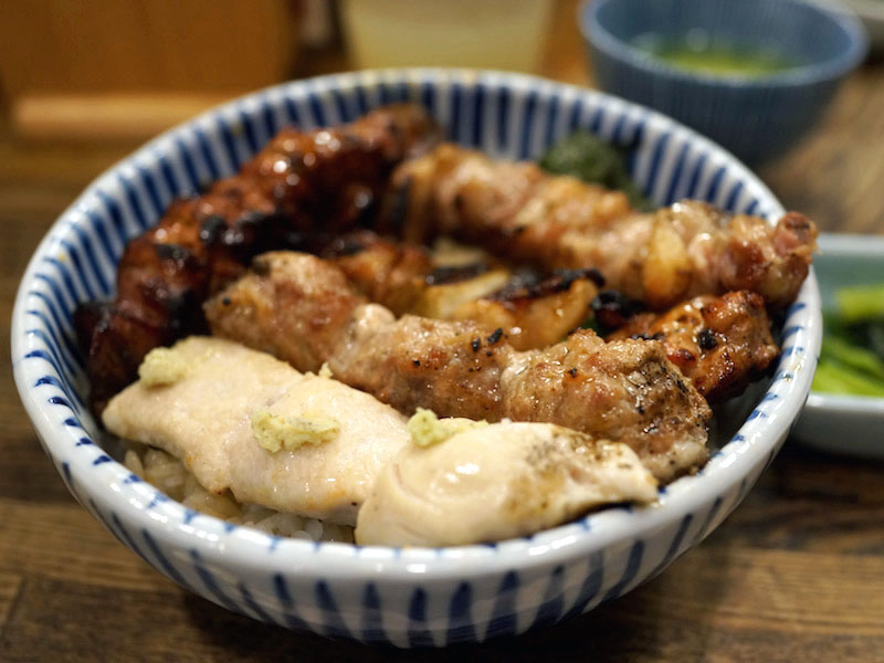 串5本分の焼鳥が、キチンと収まり、下のご飯がキレイに隠れる。なんたる贅沢。