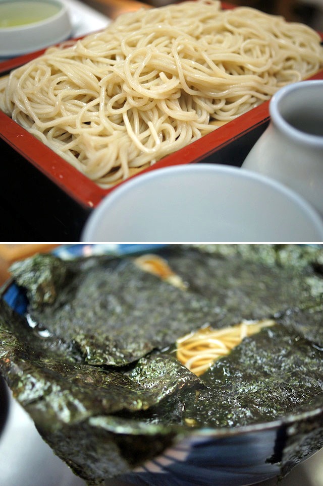 蕎麦がほとんど隠れるほどにのせてそこに蓋をする。