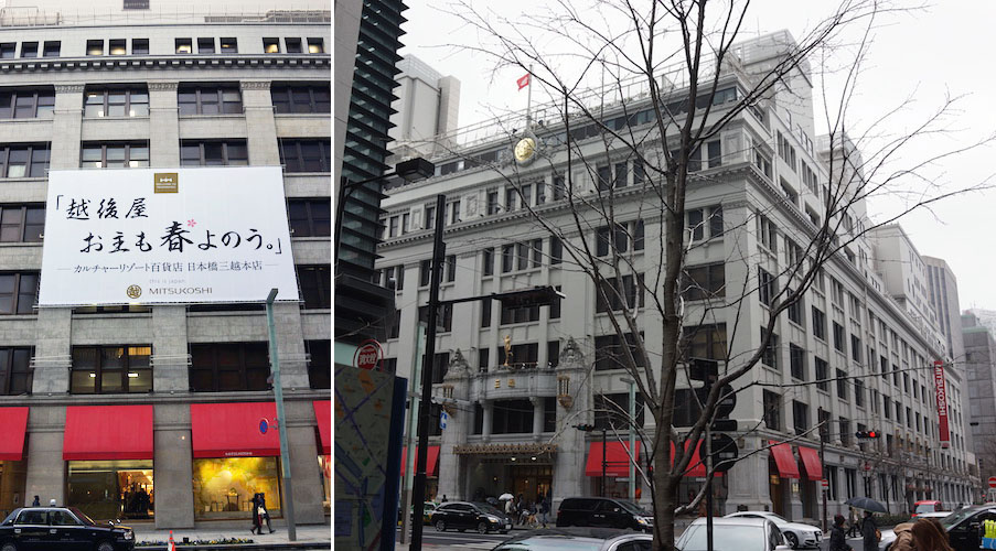 昼、日本橋にやってくる。ちょっと小雨がぱらつく寒い一日…、パシャリと三越本店の写真を撮った。