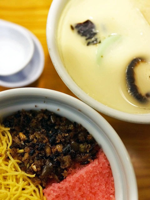 ココの蒸し寿司は具材は単純…、錦糸卵にピンクのでんぶ、細かく刻んだ焼いた穴子と色鮮やかでうつくしい。