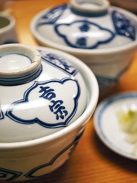 どっちがどっちか、ひと目見ただけでは普通はわからず、けれどお店の人はササッと蓋をとらずにどちらがどちらかわかるのですネ…、聞けば蓋の周りから出汁が滲んでみえたらそれが茶碗蒸し。