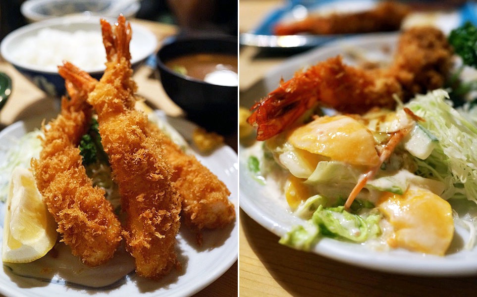 こういう料理がある店って、なんてステキでやさしんだろう…、って思ったりもする、そして〆に定食もらう、エビフライ。