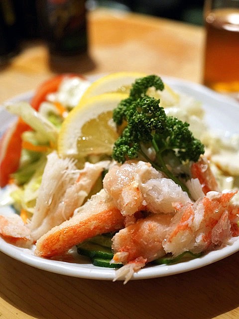 ズワイの脚の部分をドサっとレタスやトマトのサイドにのせて、ドレッシングはマヨネーズ。