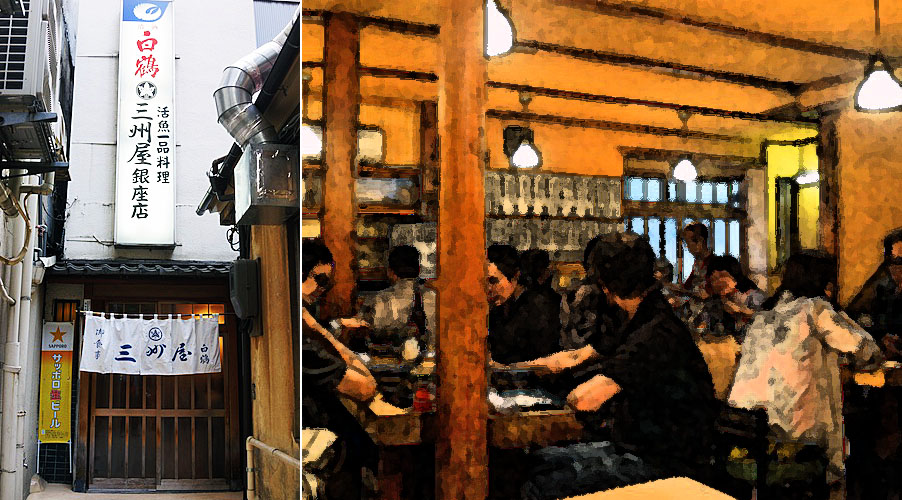 それで近所で仕事をしてる友人誘って居酒屋にくる…、「三州屋」っていう店で銀座、新橋と何軒か系列店がある中の、一番人気のあるお店。