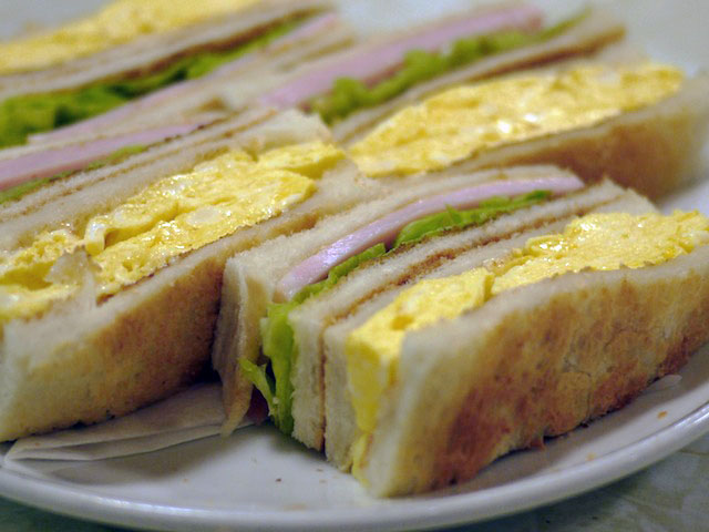 玉子とハムサンドイッチをトーストブレッドでって言うオーダー。