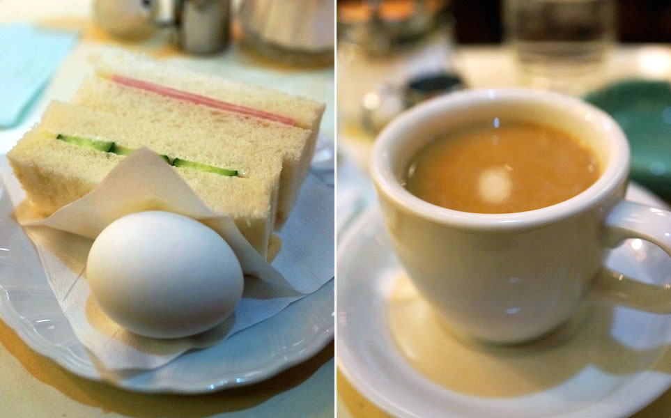 トーストかサンドイッチが選べてそれに茹で玉子が1個つくというので、しょうがないなぁ…、と思ってそれでモーニング。コーヒー選んでお願いします。