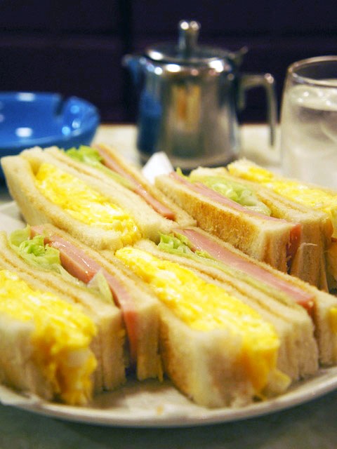 ジャジャッと鍋に流し込みジリジリ焼いてできあがる焼いた玉子のサンドイッチに、ハムとレタスのサンドイッチ。