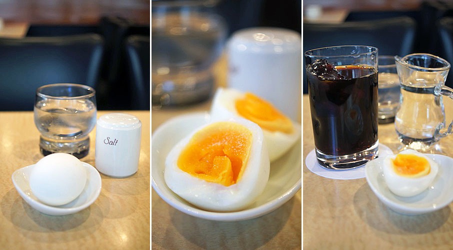 オモシロイのが朝の時間…、朝食セットをとらなくってもゆで玉子がサービスで付く。