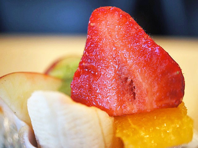 サイドにフルーツ…、イチゴにキウイ、りんご、バナナ、パイナップルと小さな器にギッシリつまってやってくるのだけれど、いやいや、これがまたおいしい。