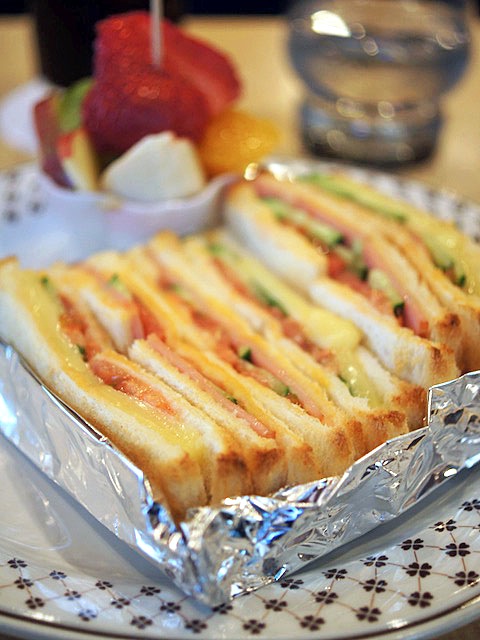 それからチーズというモノで、サクッと焼いた食パンでそれら素材も見事に薄く切られてて挟まれているその熟練の手際にウットリ。