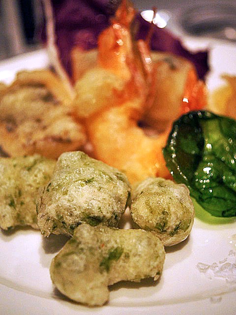 フレッシュバジルの葉っぱもカラッと揚げられて、彩りもよく齧るとパッと口の中が明るくなるような香りがおいしい。