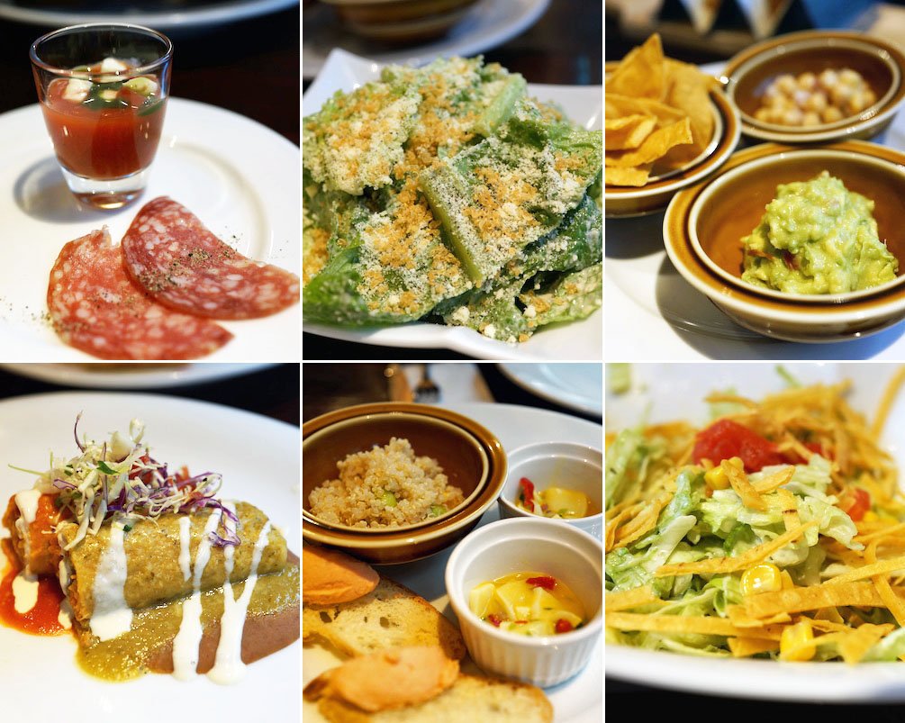アボカドを食感残して仕上げたワカモレもコリアンダーの香りが鮮やか。焼いたチキンをほぐしてそれを芯にしたエンチラーダのソースは酸味、香りもまさにメキシコ。セビーチェ、キアヌのサラダにトルティアチップのクミンシードのフレーバーで味わうレタスのコールスロー。
