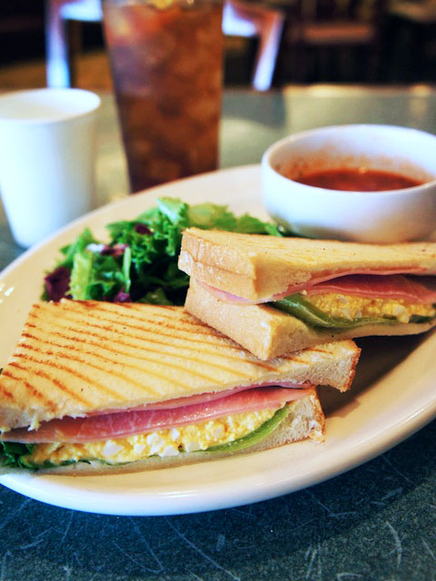 カサっと乾いたパンの食感、ボク好みにて中に挟んだタマゴサラダがポッテリ、ソースの役目を果たす。