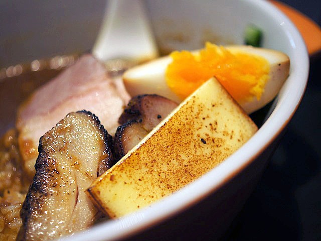 しかも具材の種類が厚切りベーコン、鶏のグリル、玉子にチーズという品揃えもラーメン店のチャーシュー、味つけ玉子を彷彿とさせてニッコリ。
