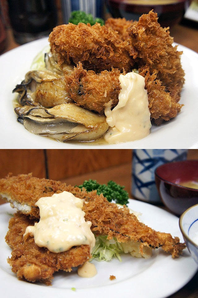 牡蠣ミックスっていうのをたのむと、牡蠣のフライとバター焼きを一緒に盛って出してくれる。