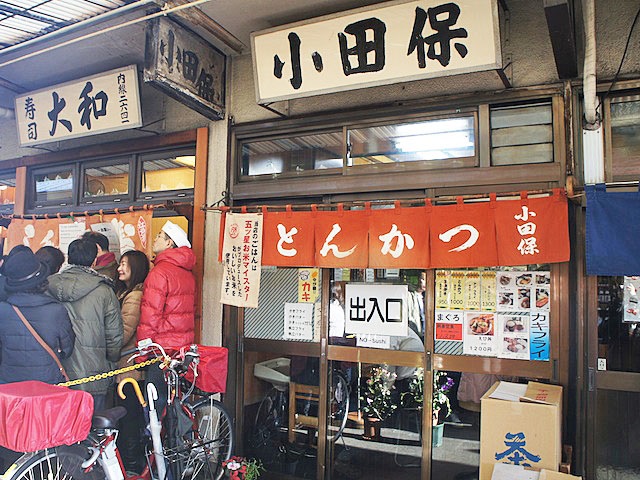 店の両側は築地場内でも行列ができるので有名な寿司のお店で、だから人波かき分けて。