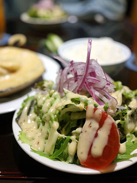 料理を注文するとまず、アイスティーとサラダが来ます。
