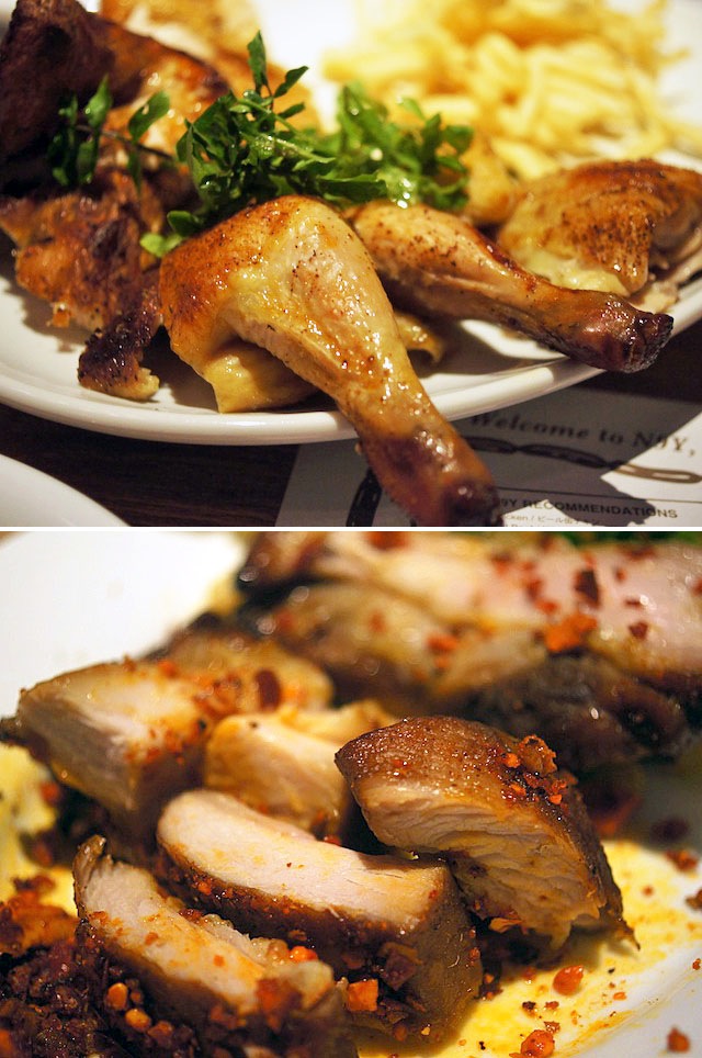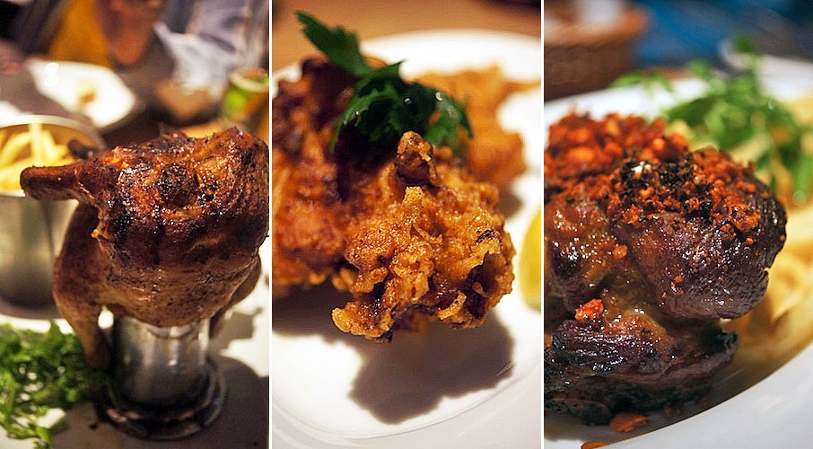 ビア缶チキンとバタークリームフライドチキン、それからスパイシースペアリブってそれぞれココの売り物料理をたのんでためす。