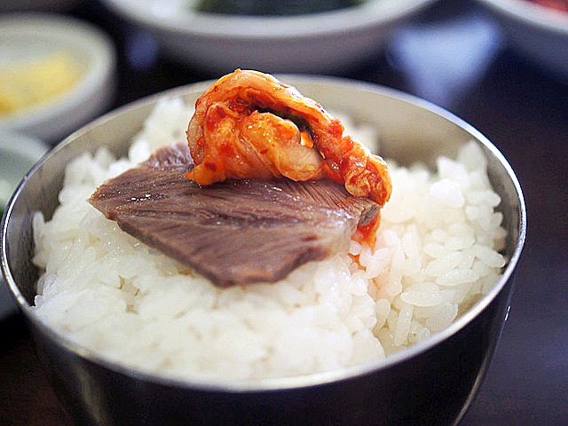 これをそのままほぐして食べたら、コーンビーフになるんだろうなぁ…、と思いながらご飯にのっけ、キムチを添えてパクリと食べると、そのおいしさに飛び上がる。