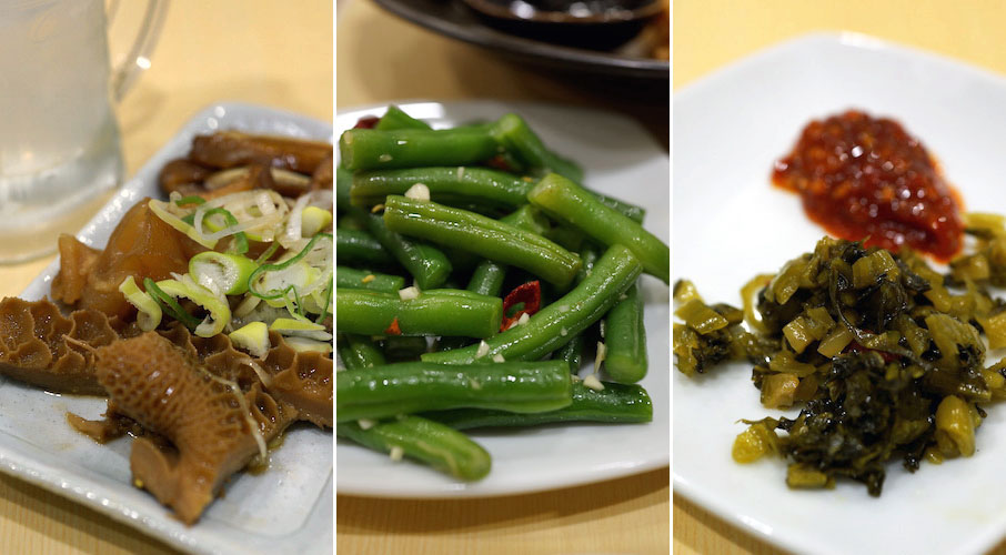 高菜に豆板醤がセルフサービスコーナーに置かれて、自由にとれるところもありがたくって、それをつまみにまた飲める。