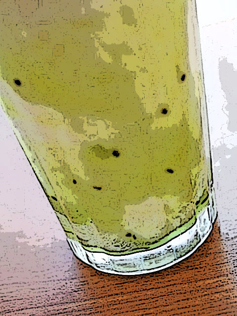 しかもプチプチ、種がはじけるて、飲んだ後口にキウイの渋みが喉をイガイガ、ちょっと刺激的でオモシロイ。